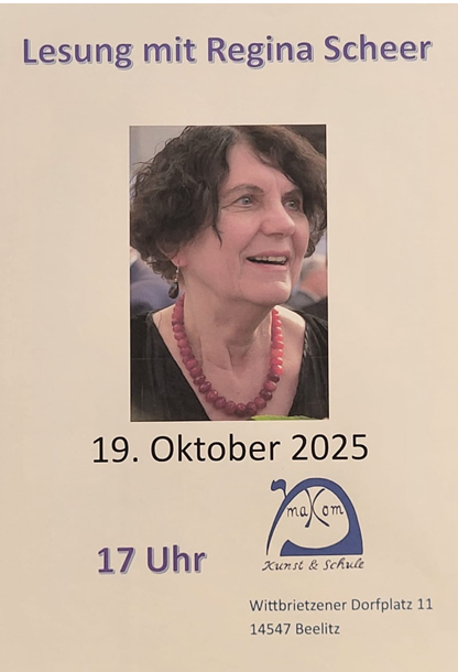 Nach der Lesung wird Regina Scheer gern Bücher signieren und bei Tee, Kaffee und Gebäck können Sie mit der Autorin aber auch miteinander ins Gespräch kommen.